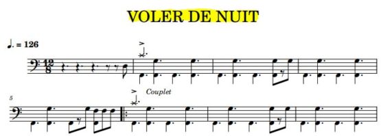 La partition Batterie du titre » Voler de nuit « de Calogero, Version originale.