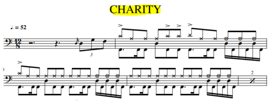 La partition Batterie du titre » Charity » de Skunk Anansie. Version originale.