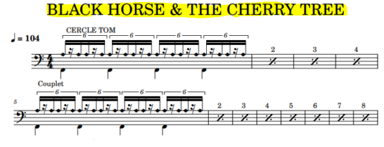 La partition Batterie du titre » Black horse and the cherry tree » du Groupe Kt Tunstall, version originale.