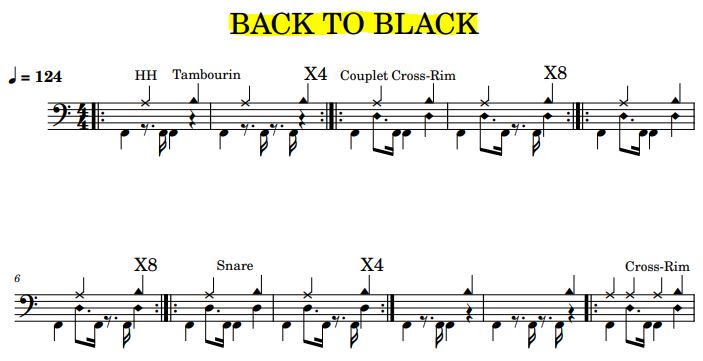 La partition Batterie du titre » Back to Black » de Amy Winehouse. Version originale.