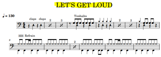 La partition Batterie du titre » Let’s get loud » de Jennifer Lopez, version originale.