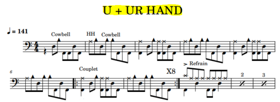 La partition Batterie du titre » U + UR Hand » de Pink, version originale.