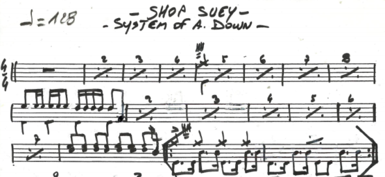 La partition Batterie du titre  » Shop suey » du Groupe System of a down.
