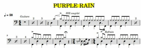 La partition Batterie du titre » Purple Rain » de Prince, version originale.