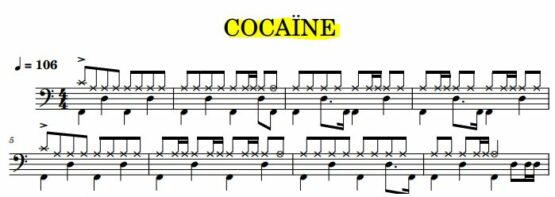 La partition Batterie du titre » Cocaïne » d’ Eric Clapton, version originale.